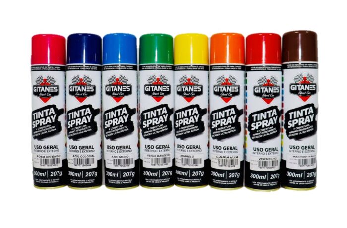 As Tintas Spray Gitanes são formuladas com resinas acrílicas de secagem rápida, que garantem ótimo acabamento e grande durabilidade. Indicada para aplicação em qualquer superfície de metal (aço e ferro), madeira, alvenaria, gesso e cerâmica, seja em ambientes internos ou externos. Possui bom poder de cobertura, resistência as intempéries e de ótimo efeito decorativo, desde que seguidas as instruções.
